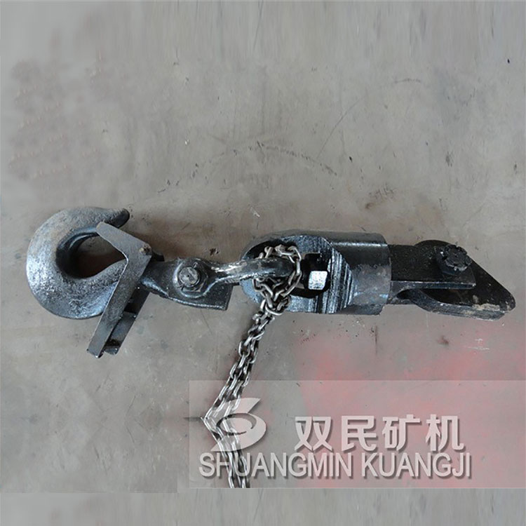 鉤頭及連接裝置,簡稱為鉤頭裝置。 該產(chǎn)品結構簡單,使用性能單一。零件全部由鍛件加工而成,鋼絲繩連接采用了兩種型式,其中5t、7t采用不偏心護繩環(huán),板卡連接;9t" />