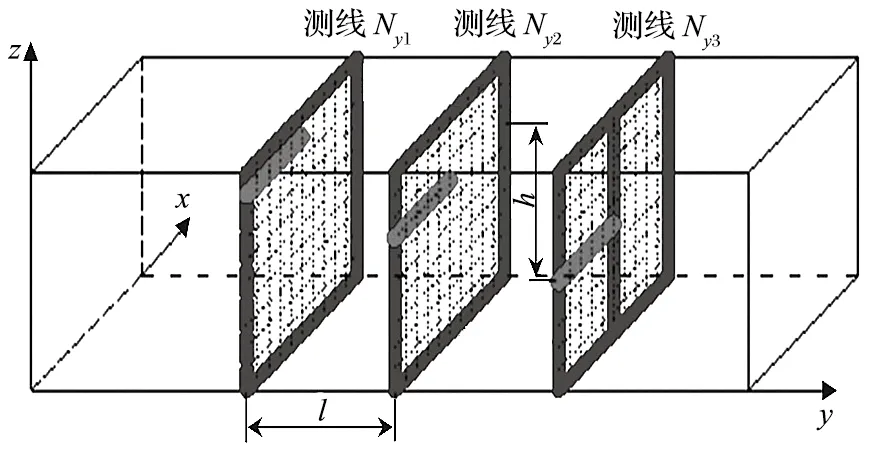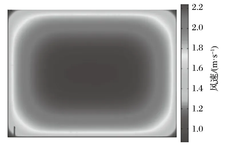由于井下各點(diǎn)巷道過風(fēng)斷面大小不一、巷道表面平整度造成的風(fēng)阻大小不一等客觀現(xiàn)象,導(dǎo)致風(fēng)速監(jiān)測時(shí)常出現(xiàn)精度誤差。因此,通過改變布點(diǎn)方式,采取階梯網(wǎng)格方式實(shí)現(xiàn)密集布點(diǎn),將原有斷面進(jìn)行切割細(xì)分,然后分析斷面內(nèi)的風(fēng)流風(fēng)速分布規(guī)律,從而得出相對(duì)準(zhǔn)確的平均風(fēng)速在斷面內(nèi)的實(shí)際位置。經(jīng)過優(yōu)化后,將風(fēng)速傳感器進(jìn)行定點(diǎn)安裝,以此提升風(fēng)速采集的準(zhǔn)確性。階梯網(wǎng)格方式分析風(fēng)速分布規(guī)律如圖1 所示,矩形斷面實(shí)測風(fēng)速分布如圖2 所示。