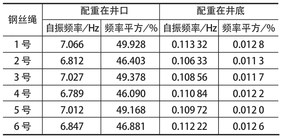 表1 鋼絲繩振動(dòng)測試結(jié)果
